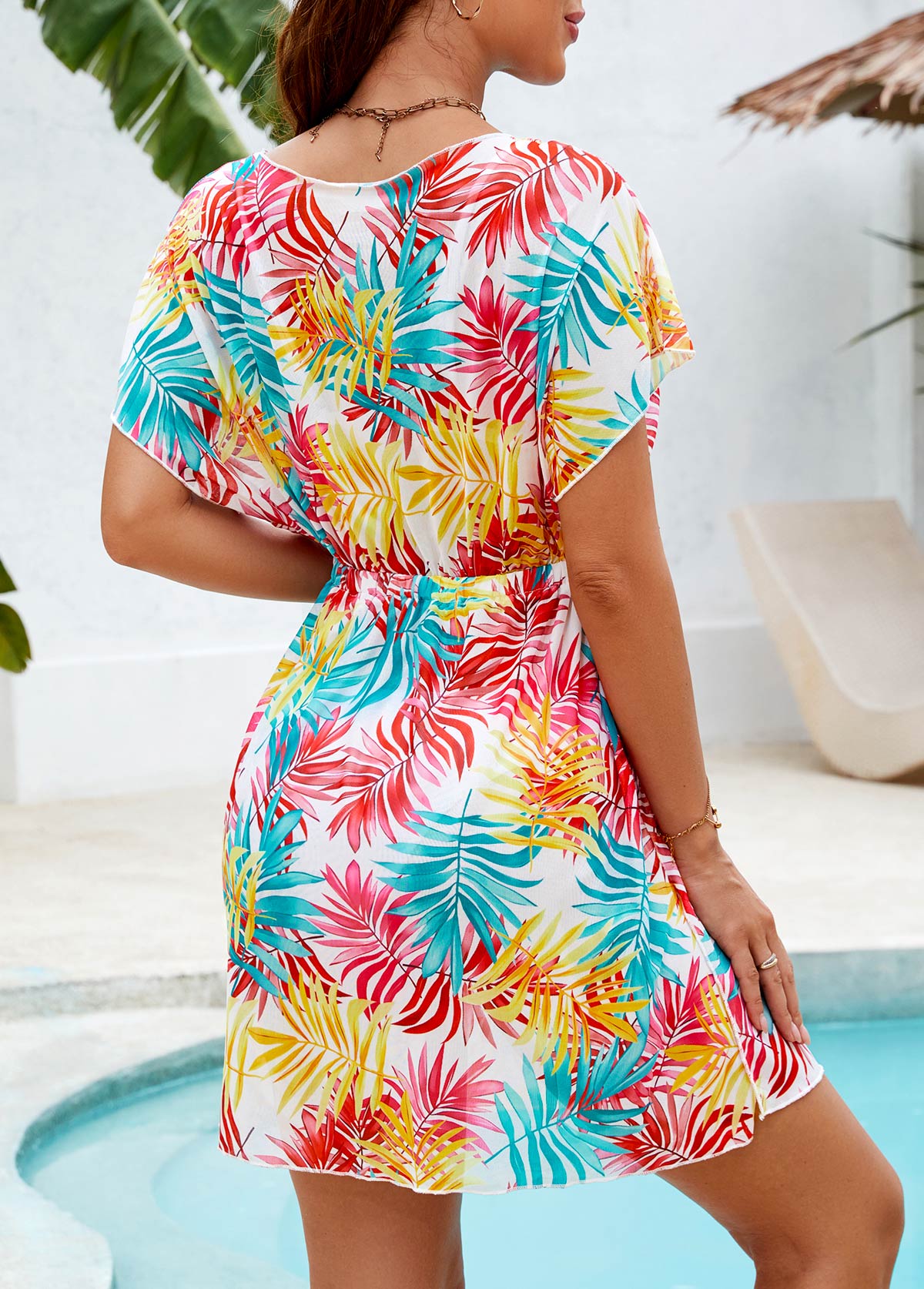 Patchwork White V Neck Cover Up