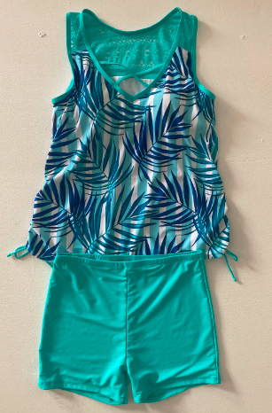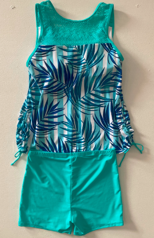 Mid Waisted Leaf Print Royal Blue Tankini Set