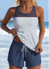 High Waisted Striped Blue Tankini Set