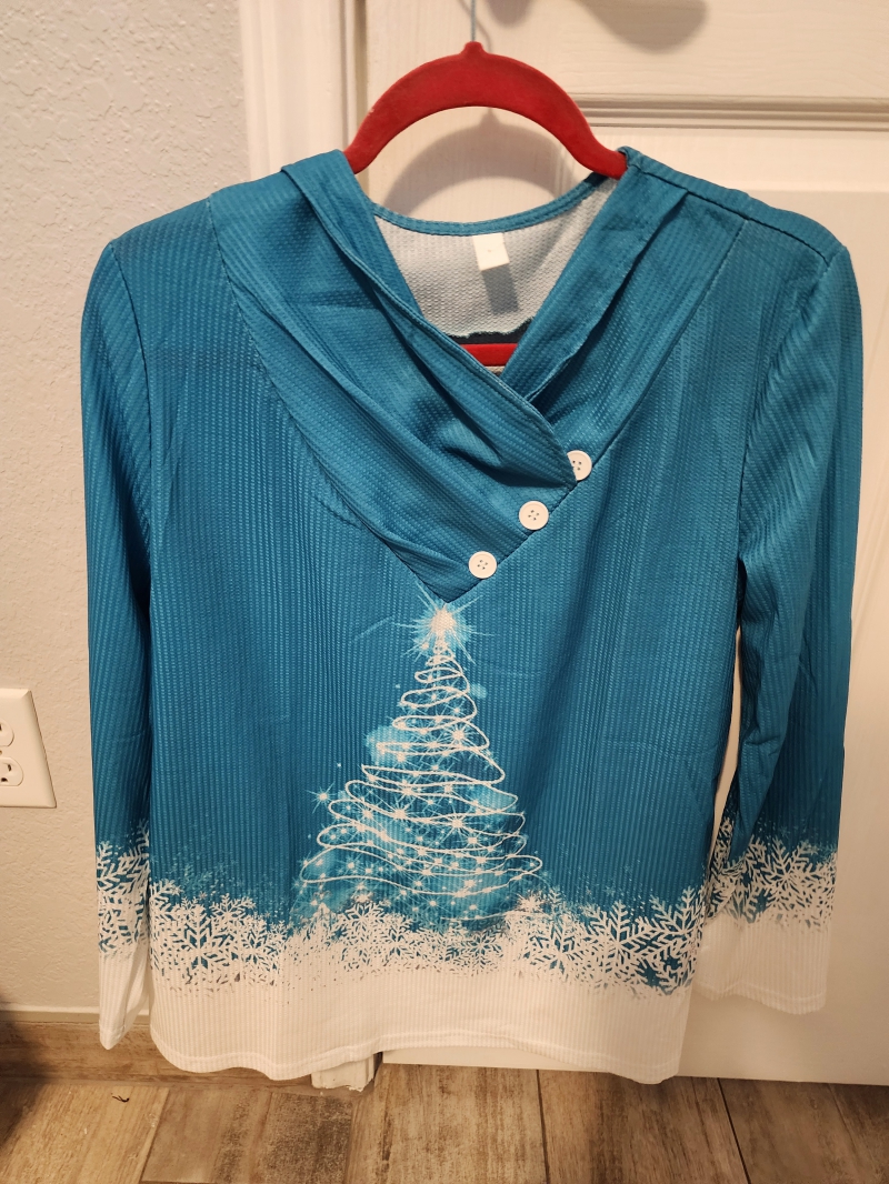 Light Blue Plaid Long Sleeve Turn Down Collar Sweatshirt