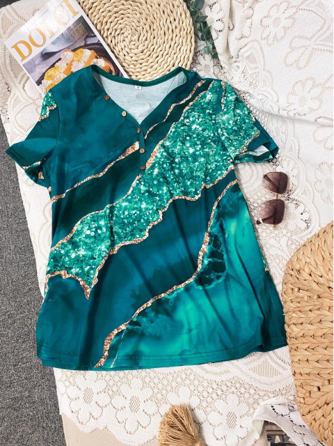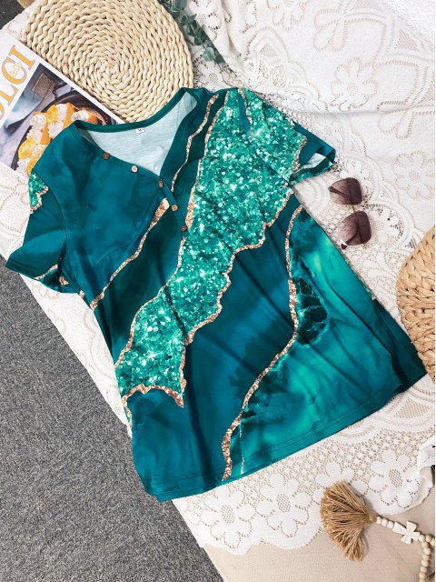 Black Tummy Coverage Dazzle Colorful Print T Shirt