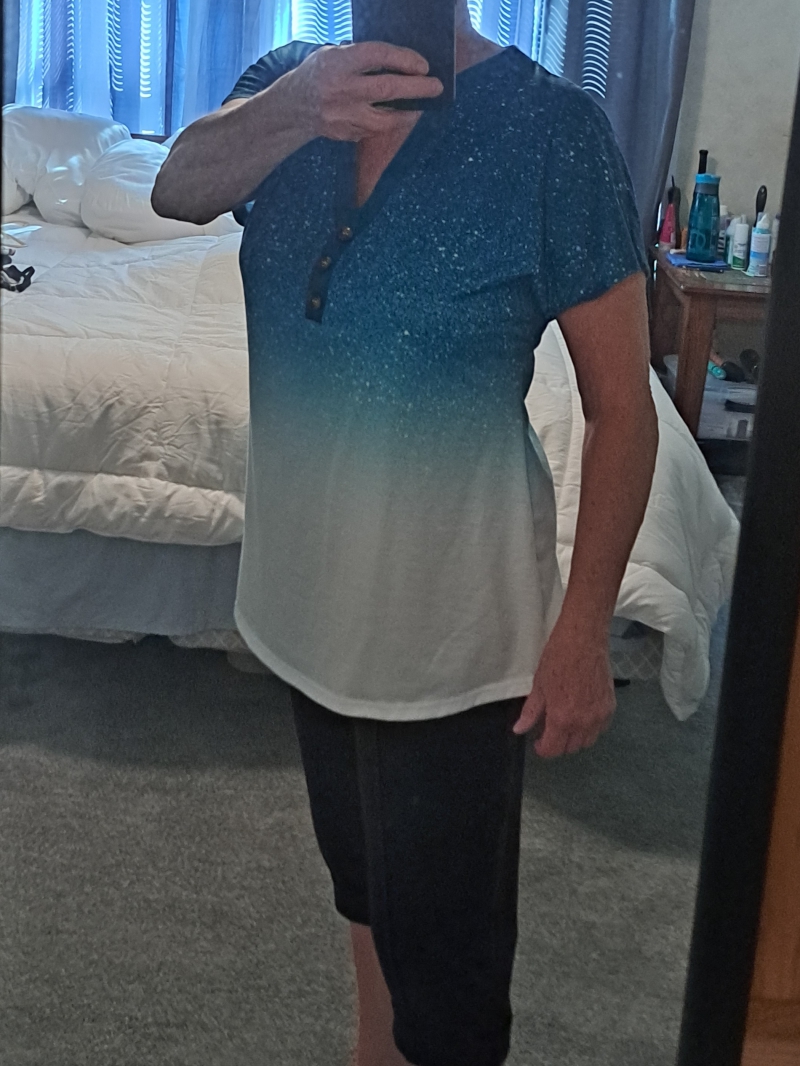 Light Blue Tummy Coverage 3/4 Sleeve Round Neck Blouse