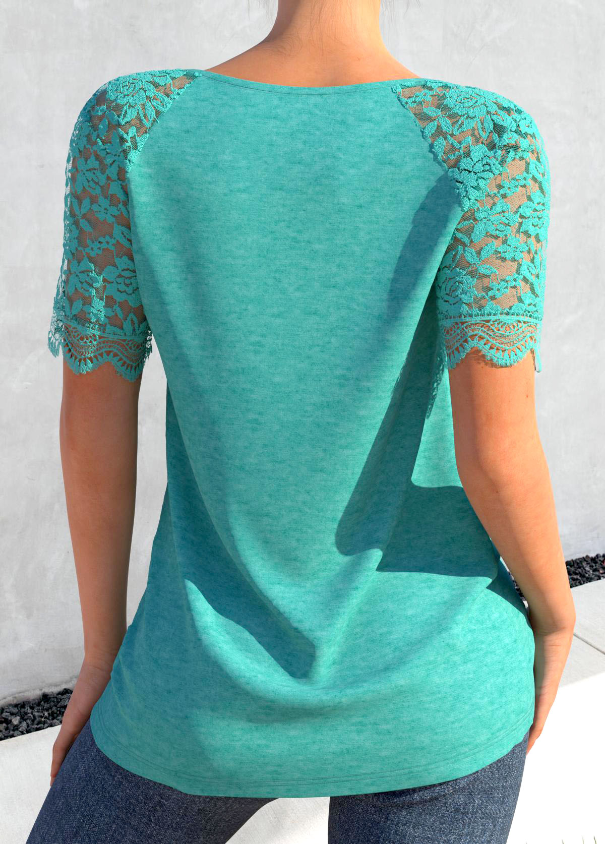 Light Green Ditsy Floral Print Lace Trim T Shirt