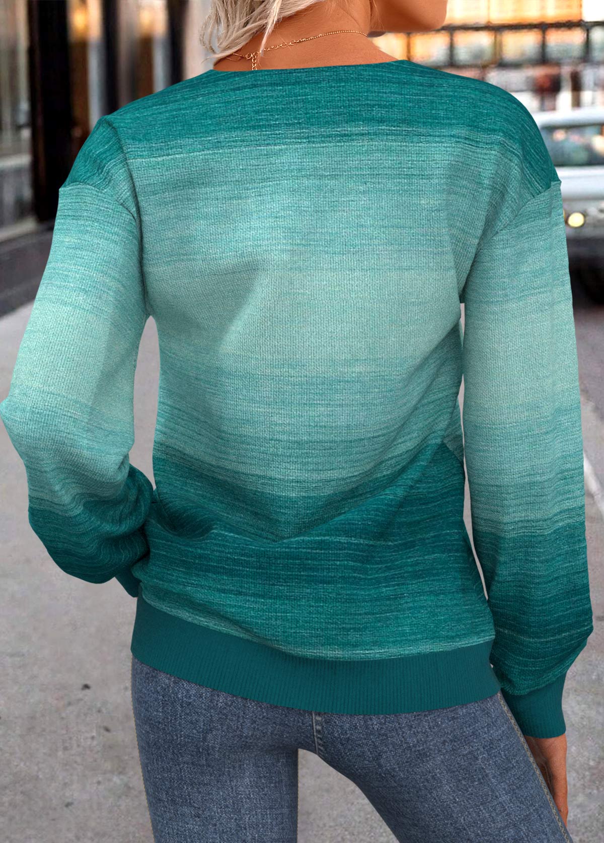 • Turquoise Lace Up Ombre Long Sleeve Sweatshirt | thumb picture