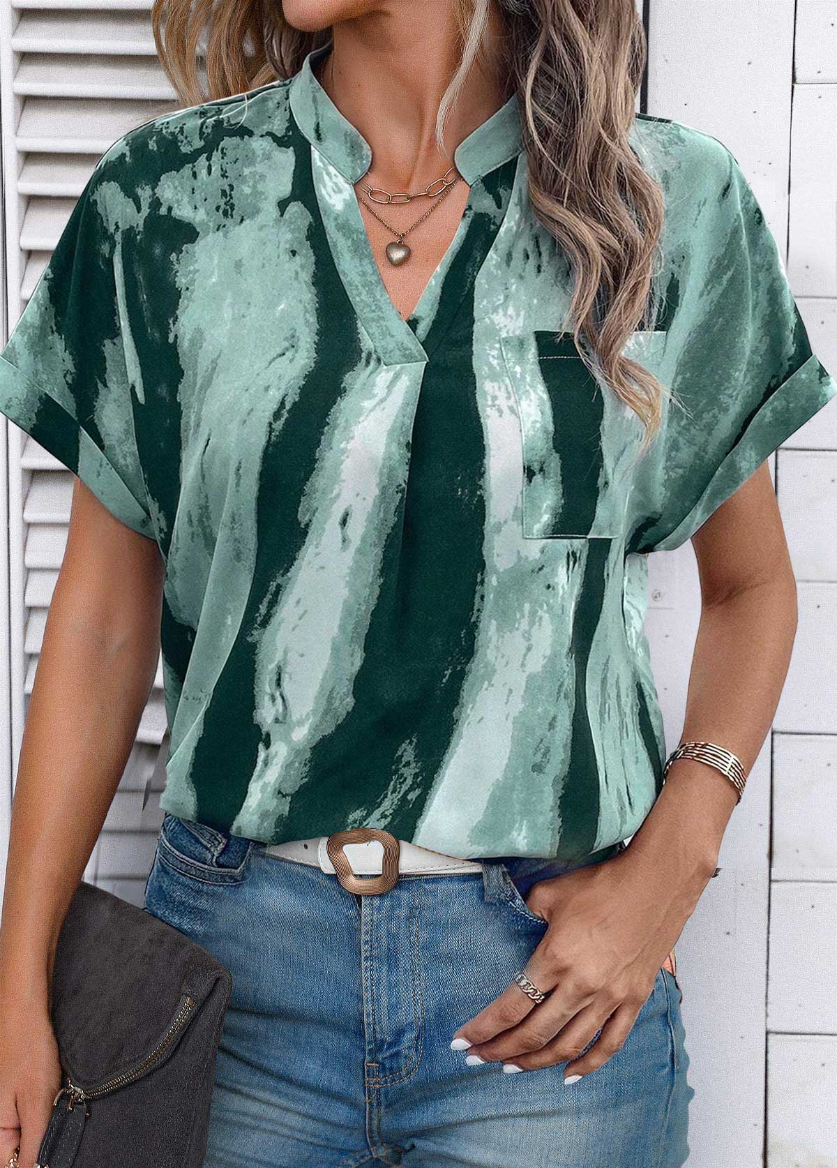Multi Color Pocket Plaid Short Sleeve Shirt Collar Blouse