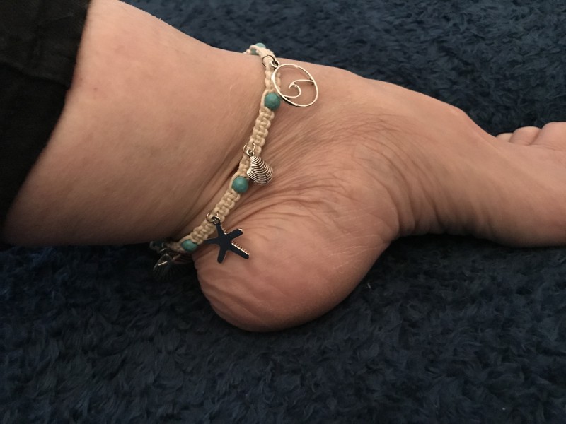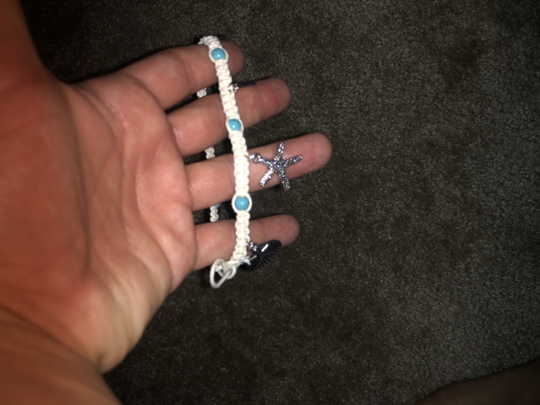 I love this anklet. It is perfect for the beach and turquoise is my favorite color! I like that the anklet is made with string instead of a chain--not easily broken! It hangs around the ankle like it was made just for me! Love it!