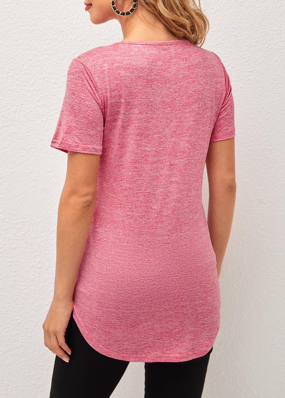 women's clothes / Tops / Tees&T-shirts  /  V Neck Pink Tassel Detail Short Sleeve T Shirt