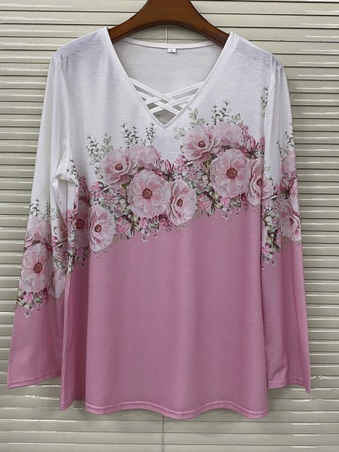 Light Pink Tummy Coverage Dazzle Colorful Print T Shirt