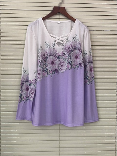 Purple Tummy Coverage Geometric Print Long Sleeve Sweatshirt