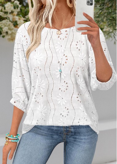Raw White Tummy Coverage 3/4 Sleeve Round Neck Blouse