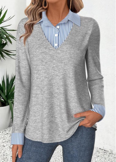 Light Grey Marl Striped Fake Two Piece Twinset
