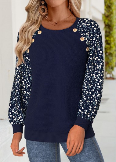 Navy Tummy Coverage Ditsy Floral Print Long Sleeve Sweatshirt