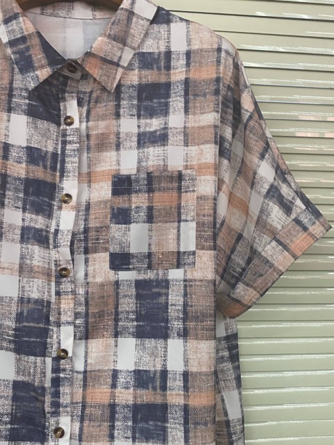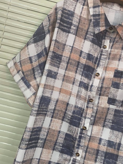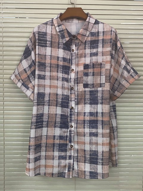 Multi Color Button Plaid Short Sleeve Blouse