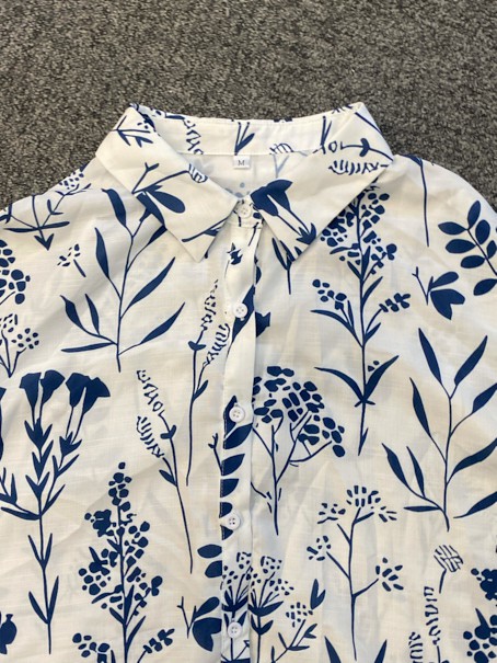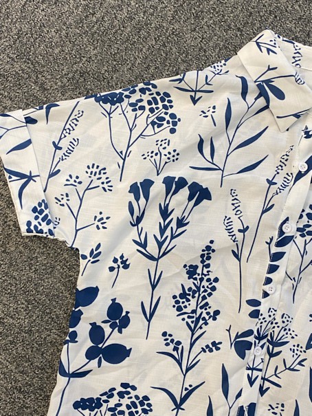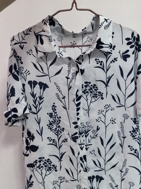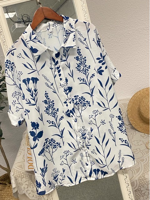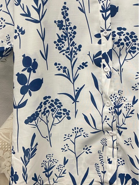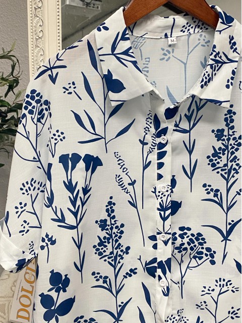 White Textured Fabric Plus Size Floral Print Shirt