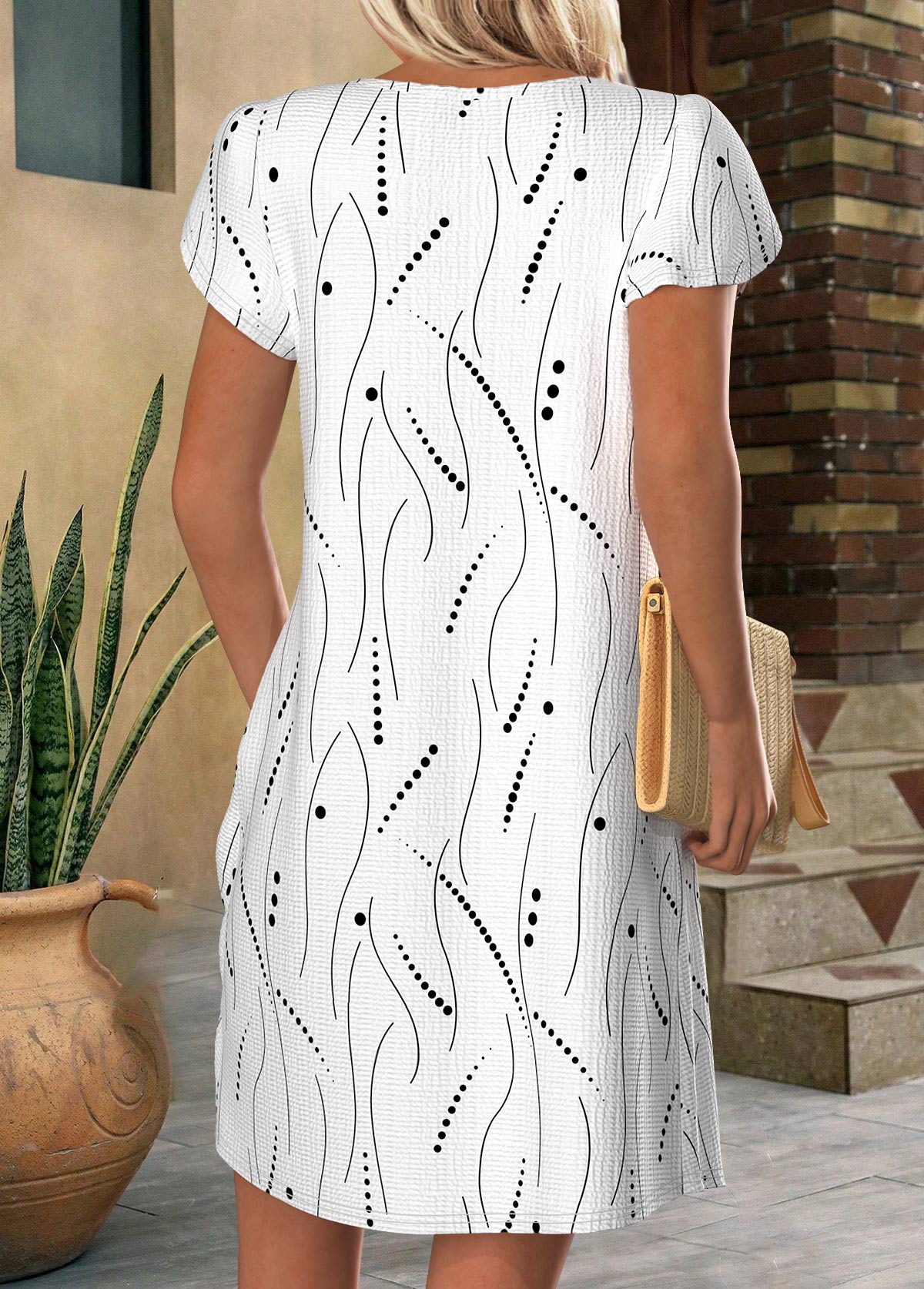 White Tummy Coverage Leaf Print Short Sleeveless Dress