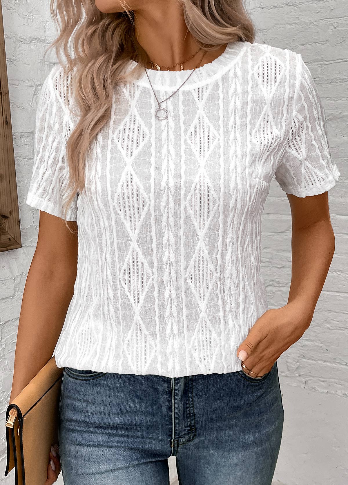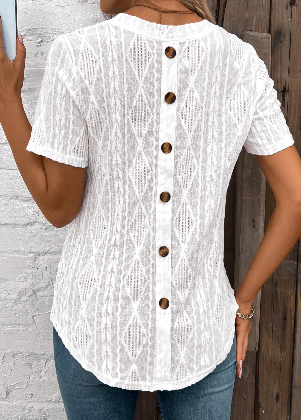 White Curved Hem Short Sleeve Split Neck T Shirt