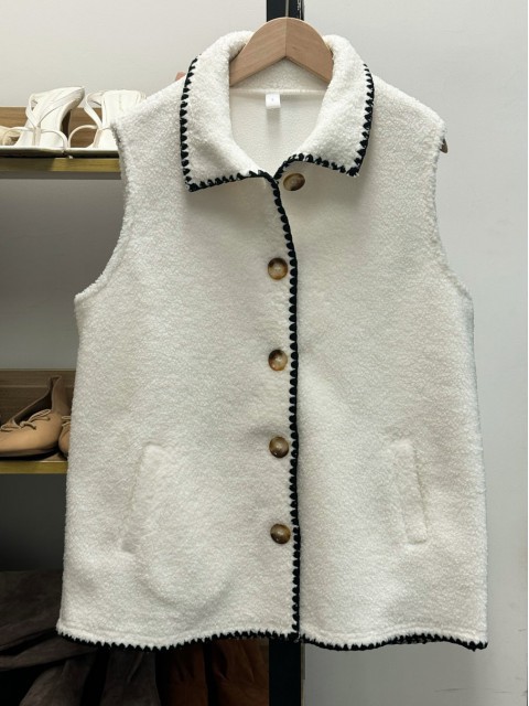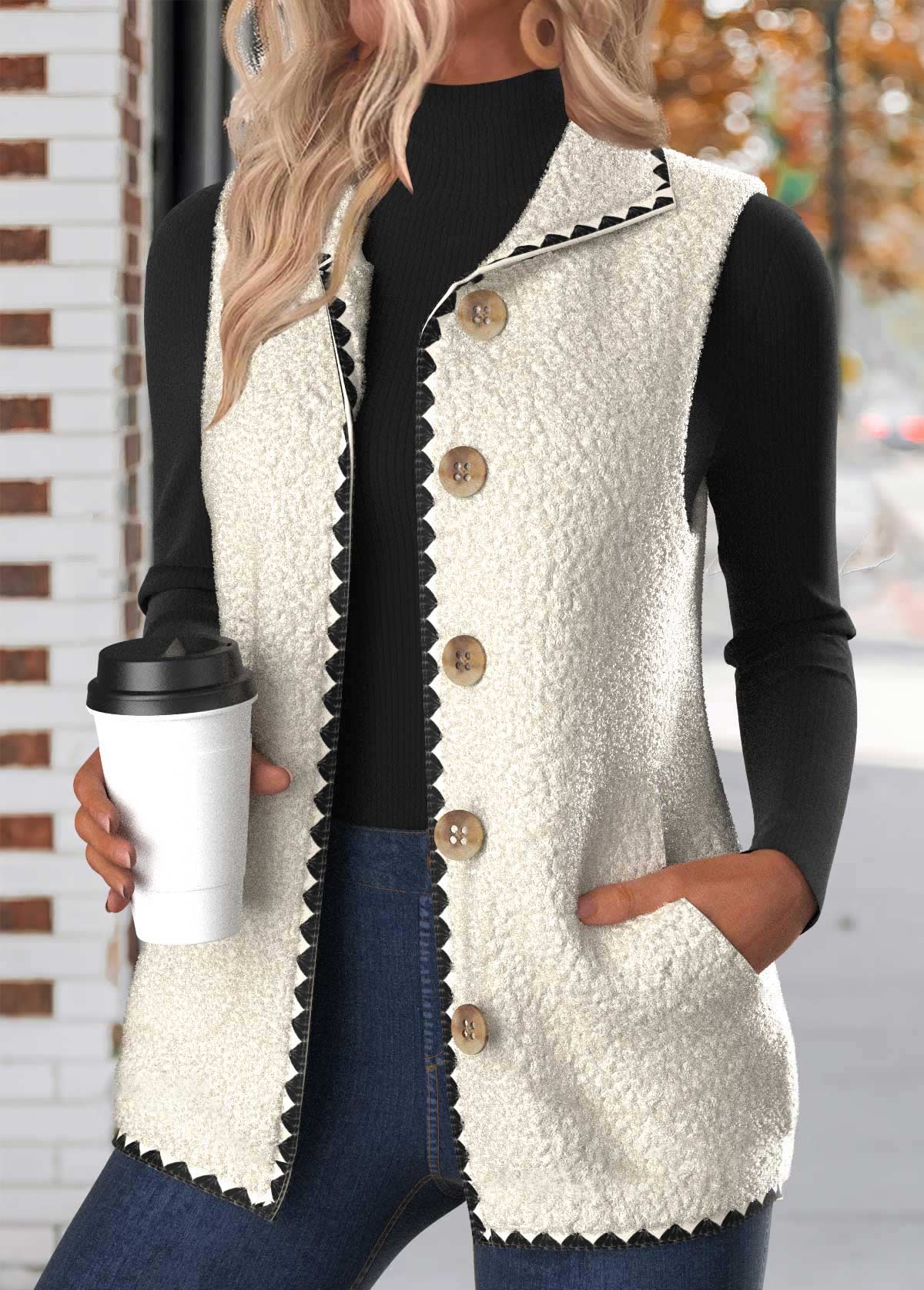 Imagine stepping into a world of effortless style with this chic white sleeveless vest. Featuring a trendy stand collar and button design, it's crafted from soft, knitted fabric that hugs you in comfort. Perfectly paired with a basic black or white top, this versatile piece adds a casual touch to your everyday wardrobe. Embrace relaxed elegance!