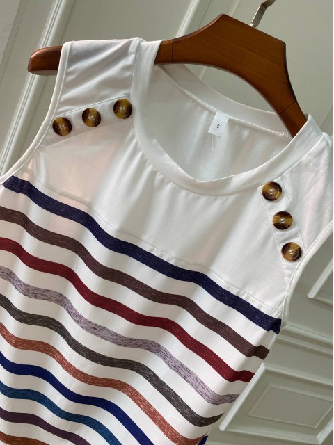 Multi Color Circular Ring Geometric Print Sleeveless Tank Top
