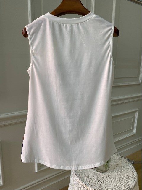 Light Blue Patchwork Floral Print Sleeveless Tank Top