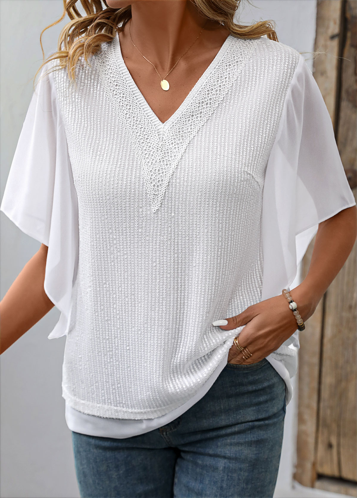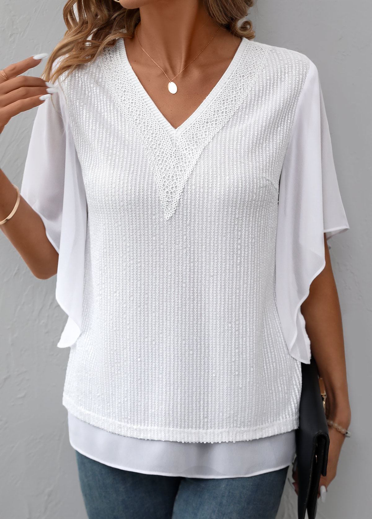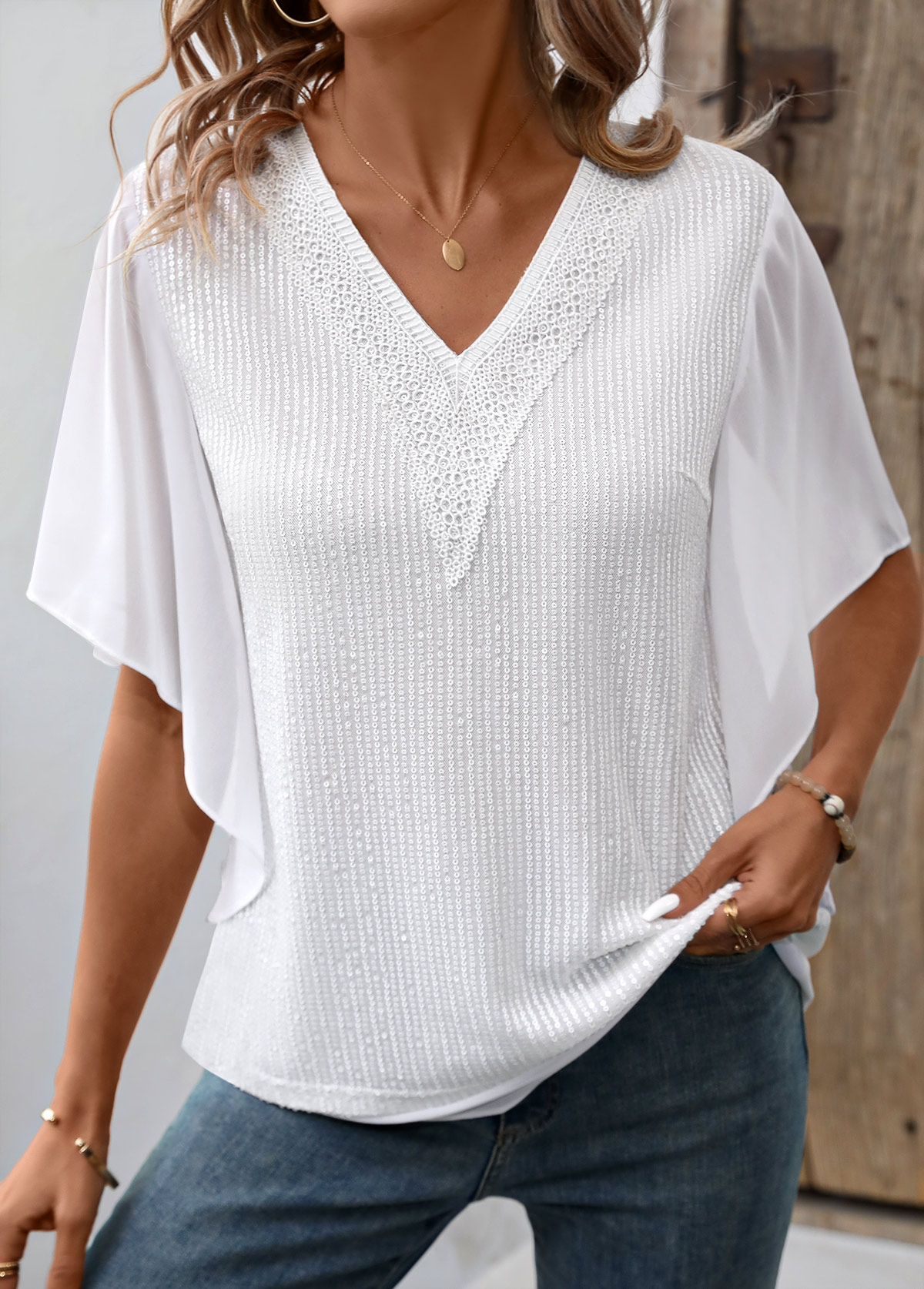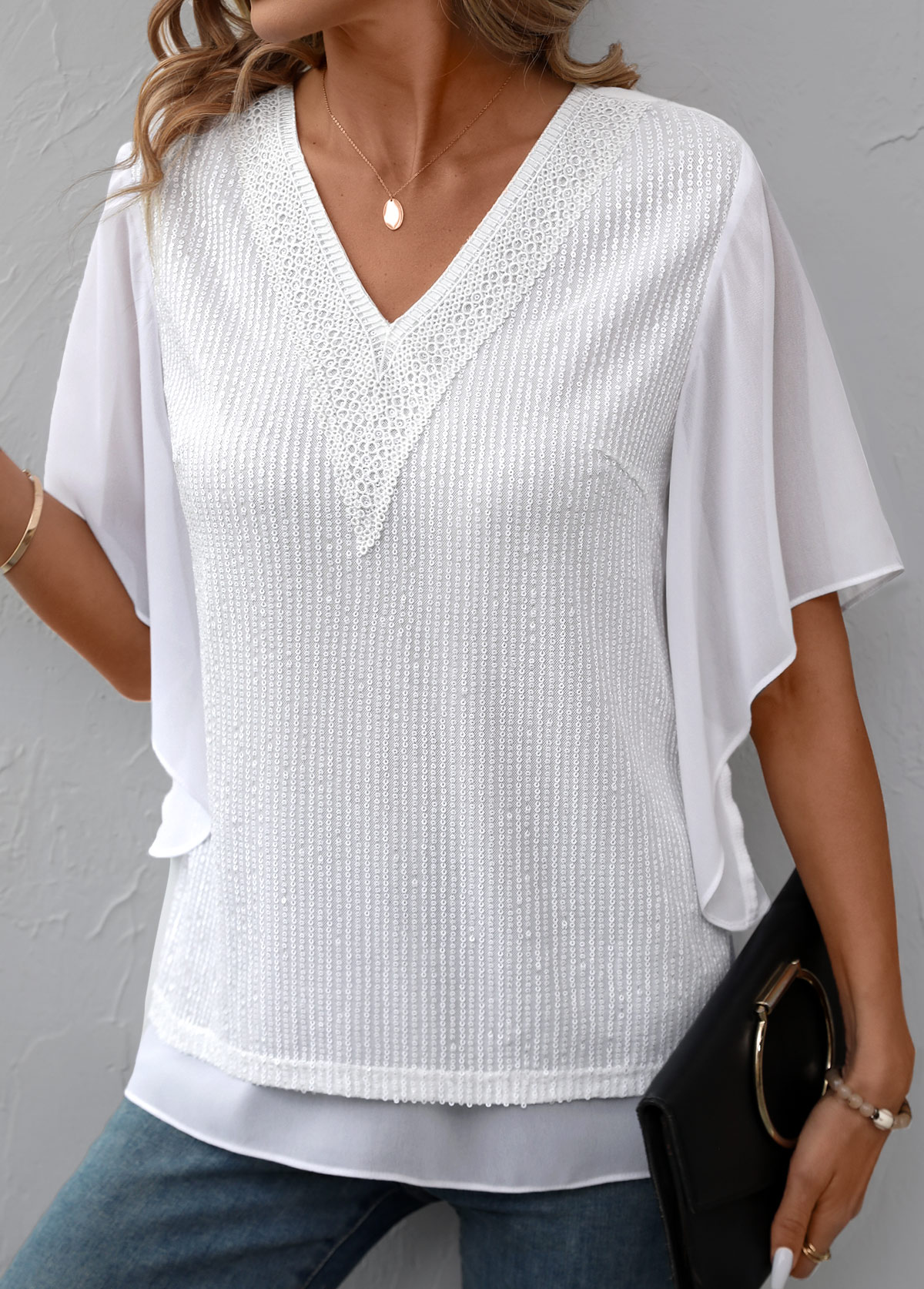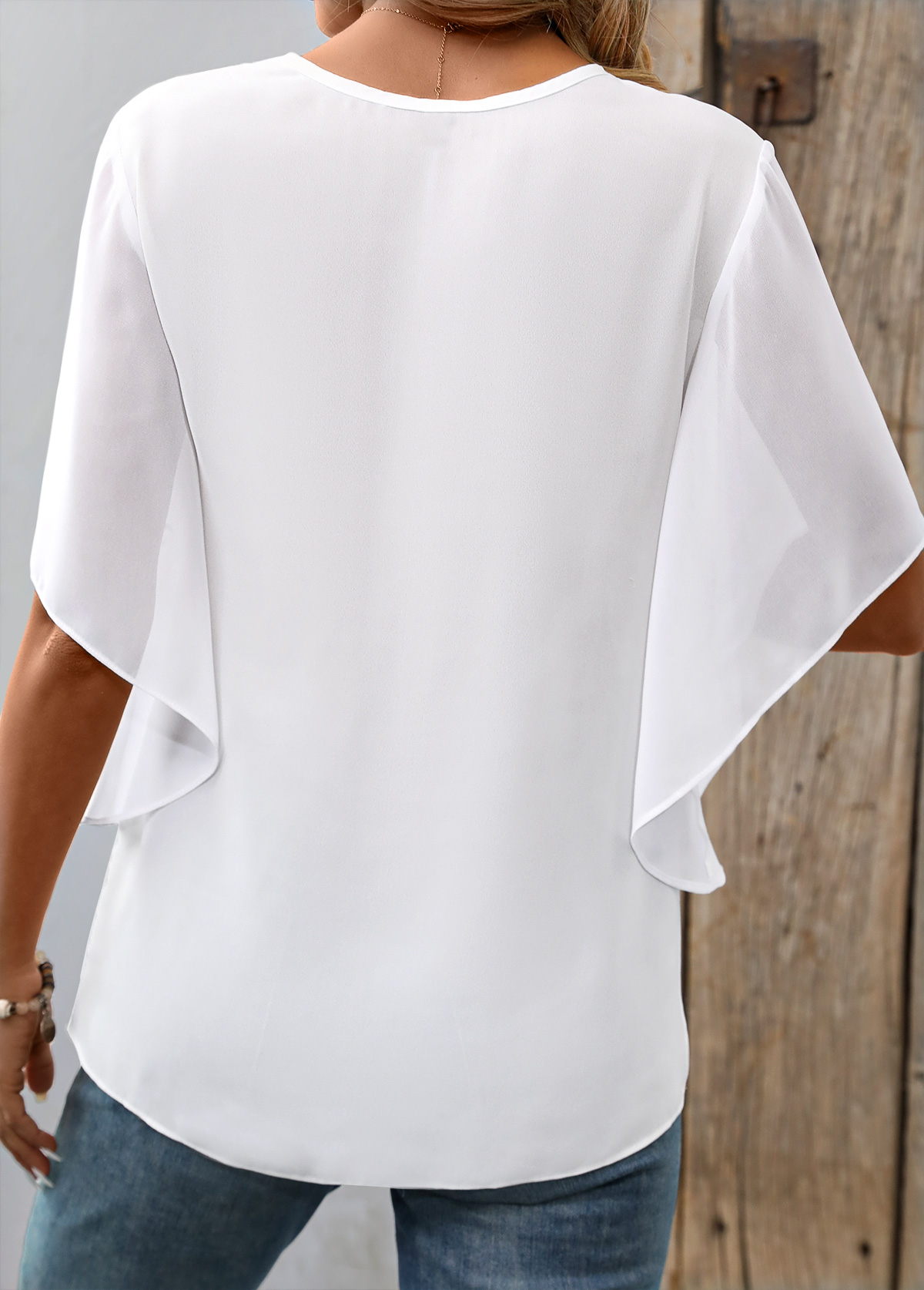 White Curved Hem Short Sleeve Split Neck T Shirt