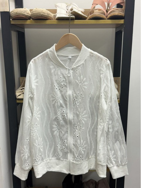 Olive Green Jacquard Long Sleeve Stand Collar Jacket