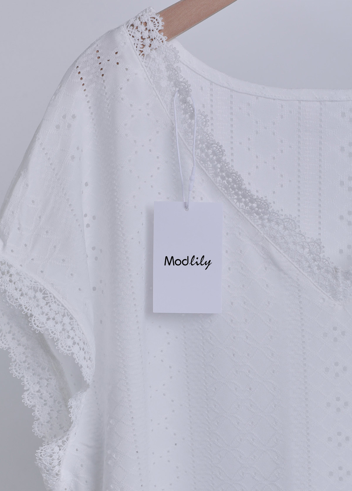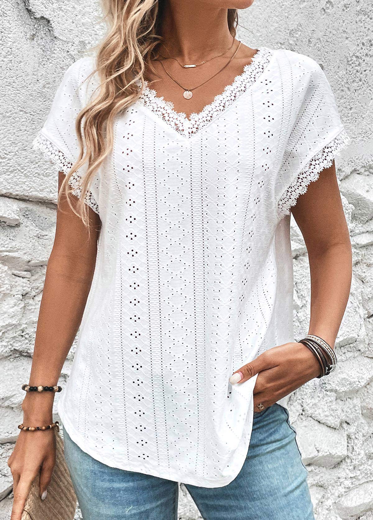 White Curved Hem Short Sleeve Split Neck T Shirt