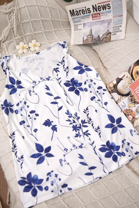 Light Blue Patchwork Floral Print Sleeveless Tank Top