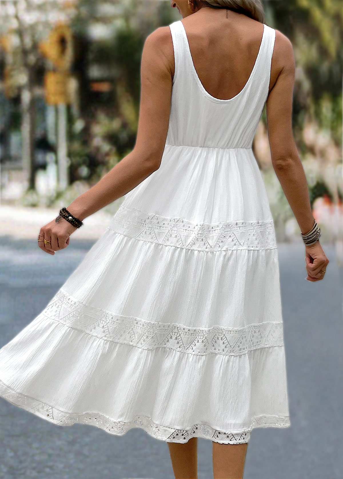White Tummy Coverage Leaf Print Short Sleeveless Dress