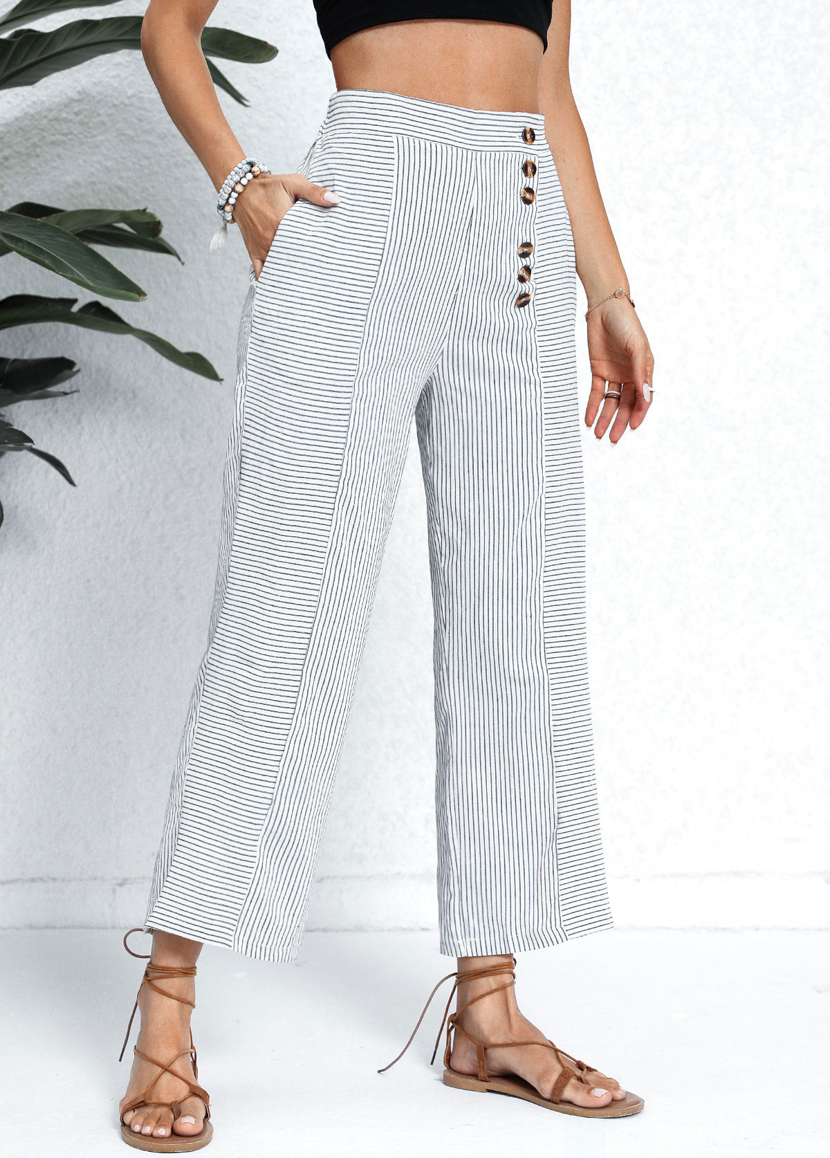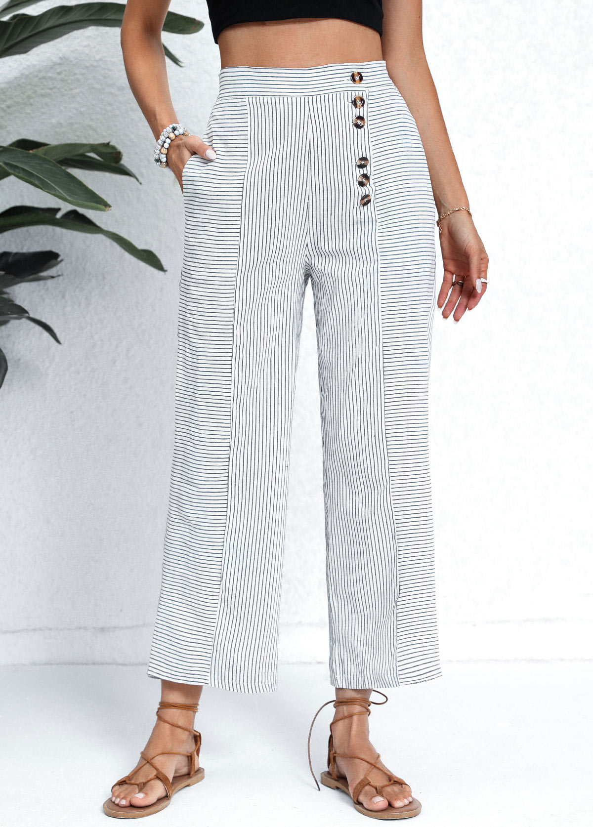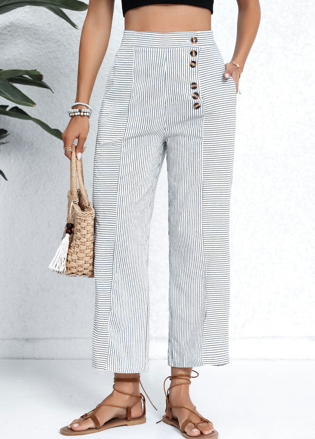 women's clothes / Bottoms / Pants  /  White Pocket Striped Button Fly High Waisted Pants