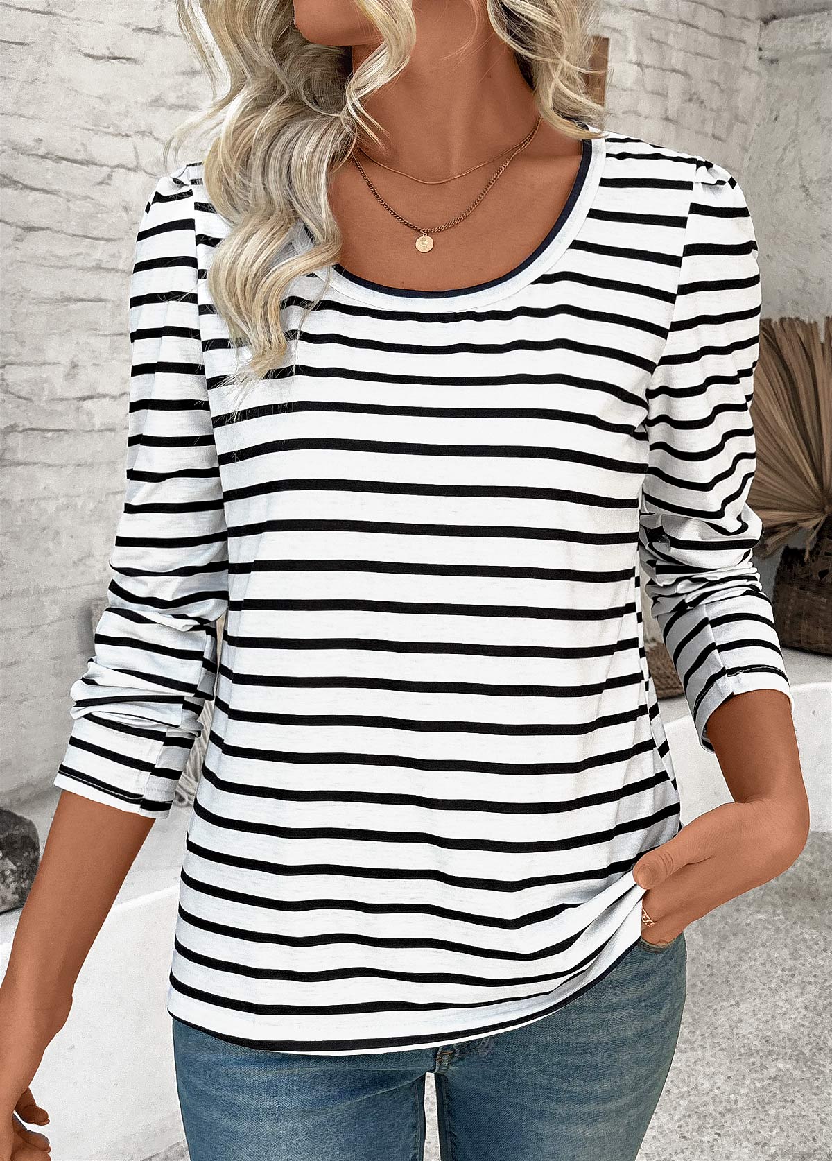 Multi Color Striped Long Sleeve Round Neck T Shirt