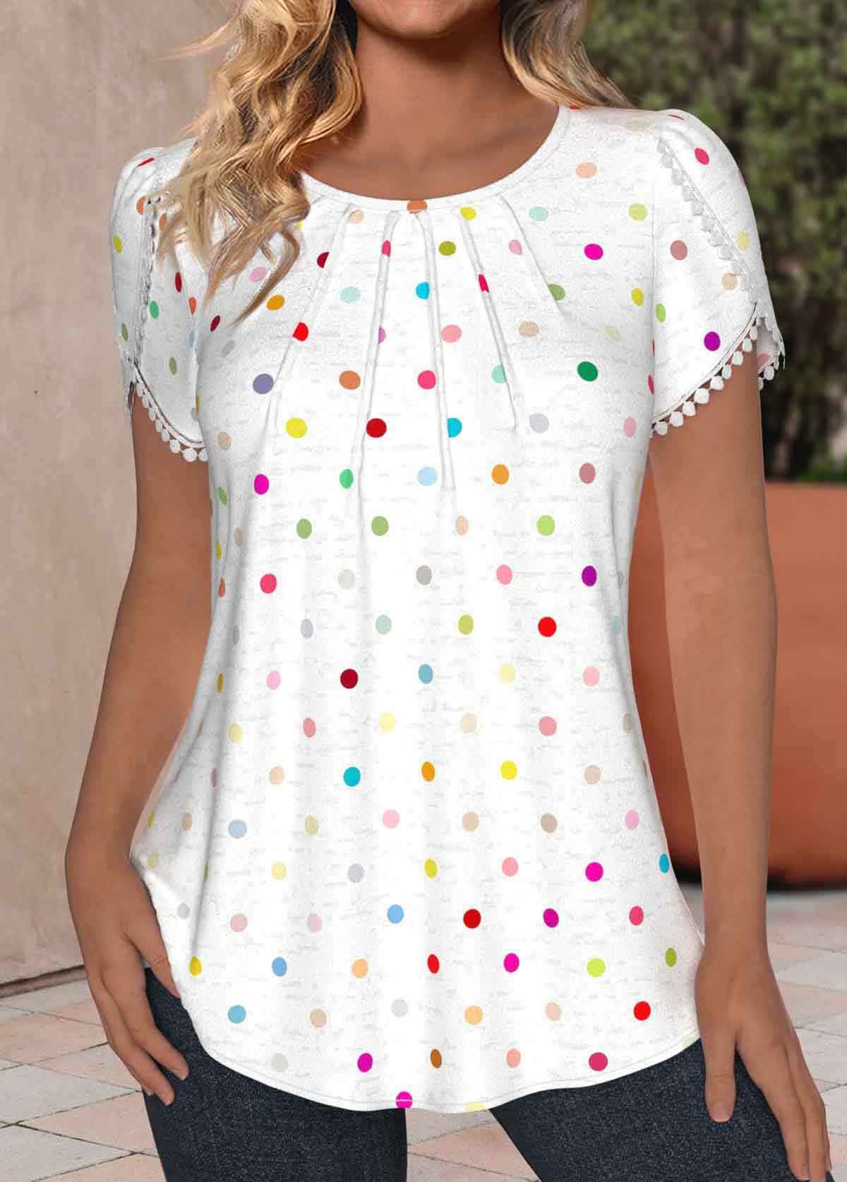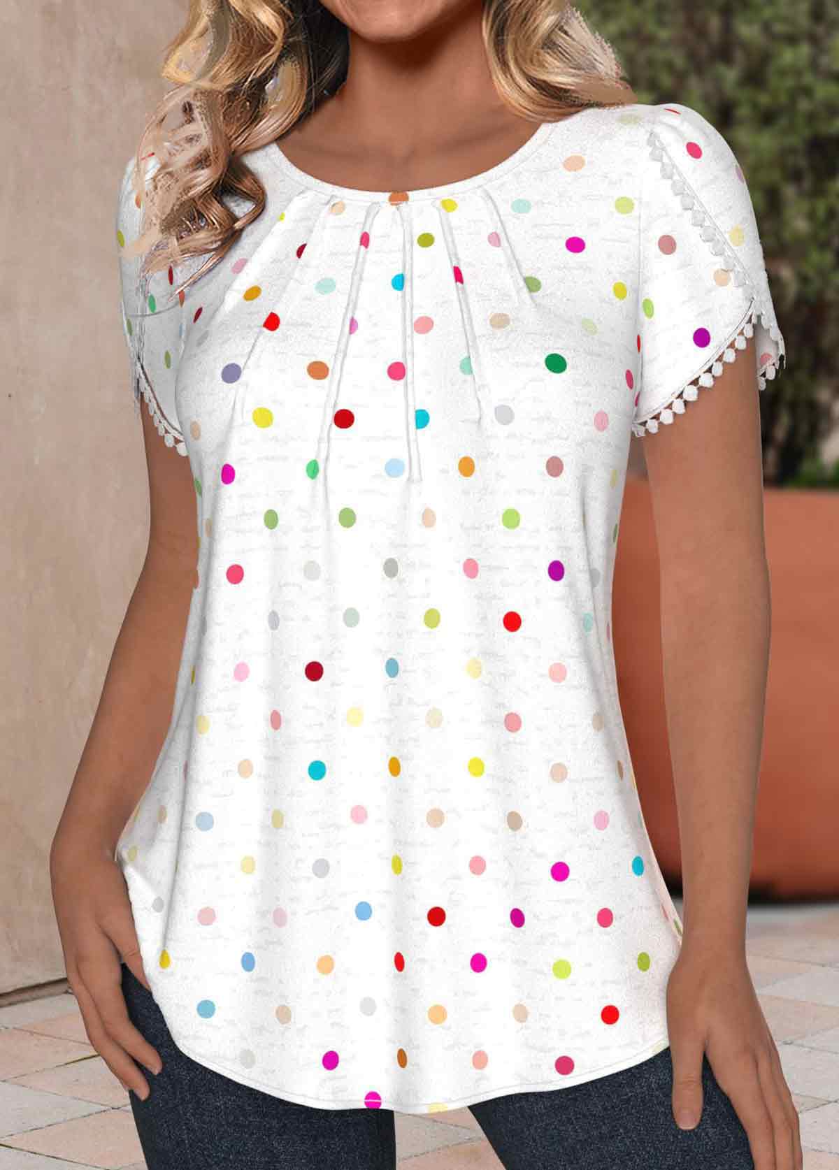 White Curved Hem Short Sleeve Split Neck T Shirt