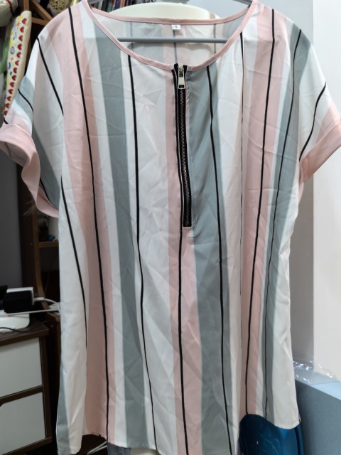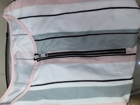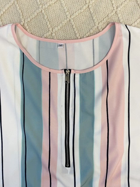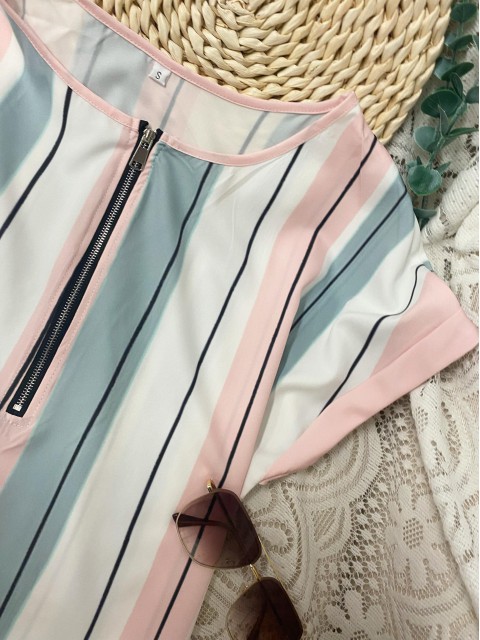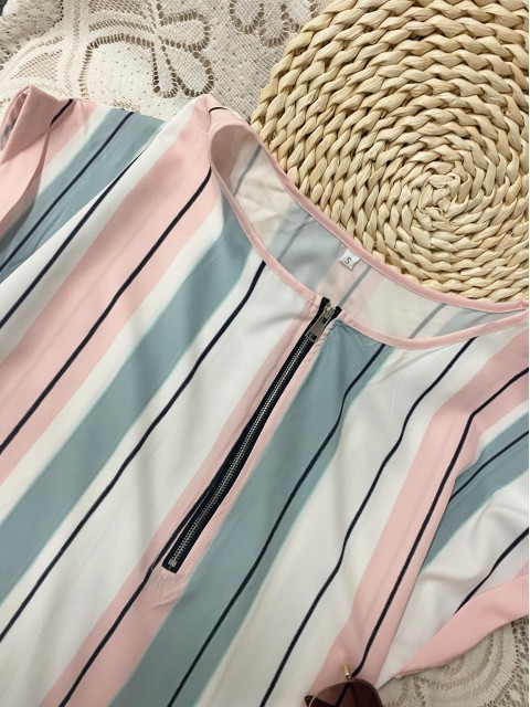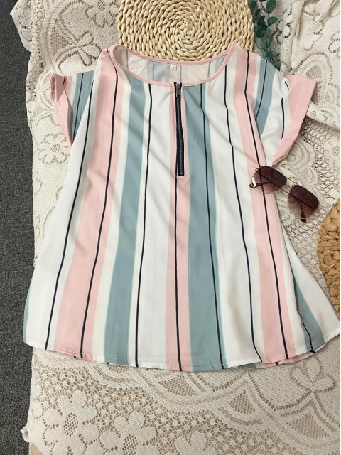 In summer's leisurely moments, this everyday casual round-neck shirt is undoubtedly your ideal choice. Its unique chest zipper design adds a fashionable touch to your outfit. The pink and white striped pattern exudes elegance and freshness. Made from soft fabric, it ensures comfort whether you're strolling down the street or meeting friends, showcasing your casual and stylish fashion sense.