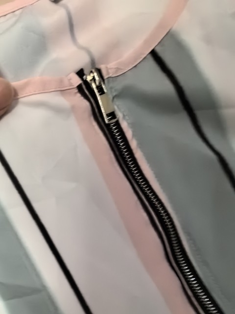 • White Zipper Striped Short Sleeve Round Neck Blouse | thumb picture