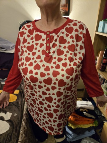 Light Camel Patchwork Heart Print Long Sleeve T Shirt