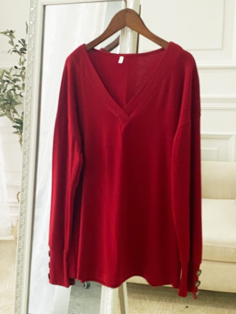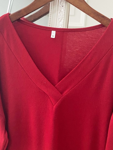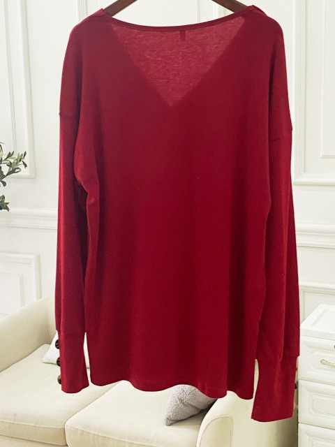Deep Red Patchwork Plaid Long Sleeve T Shirt