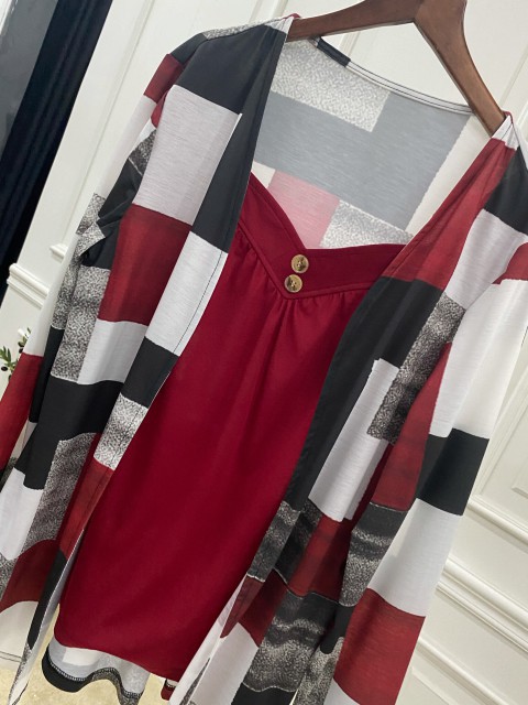 Wine Red Tummy Coverage Long Sleeve Split Neck Blouse