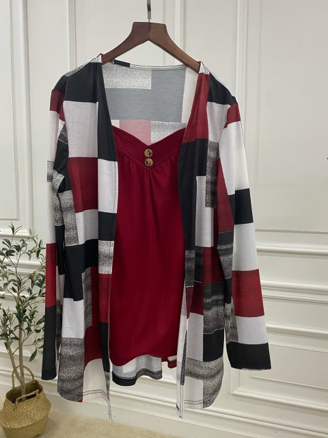 Purple Tummy Coverage 3/4 Sleeve Cardigan and Tank Top