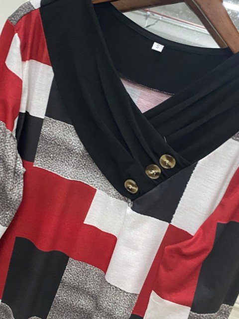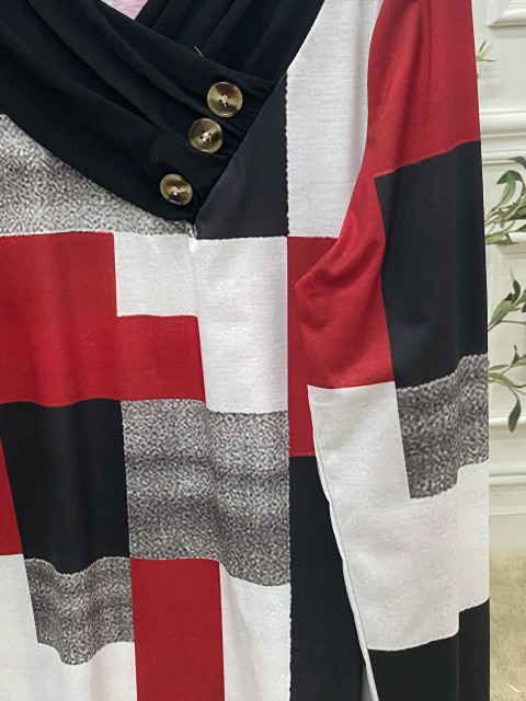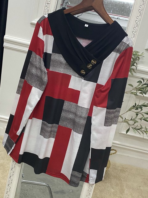 Wine Red Button Long Sleeve Asymmetrical Neck Sweatshirt
