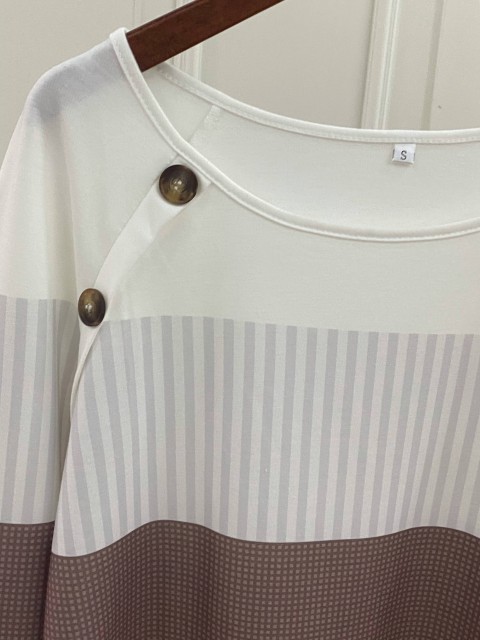 Multi Color Tummy Coverage Striped Long Sleeve Sweatshirt