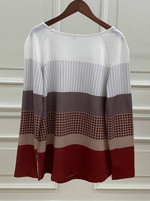 Multi Color Tummy Coverage Long Sleeve Round Neck Sweatshirt