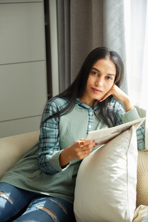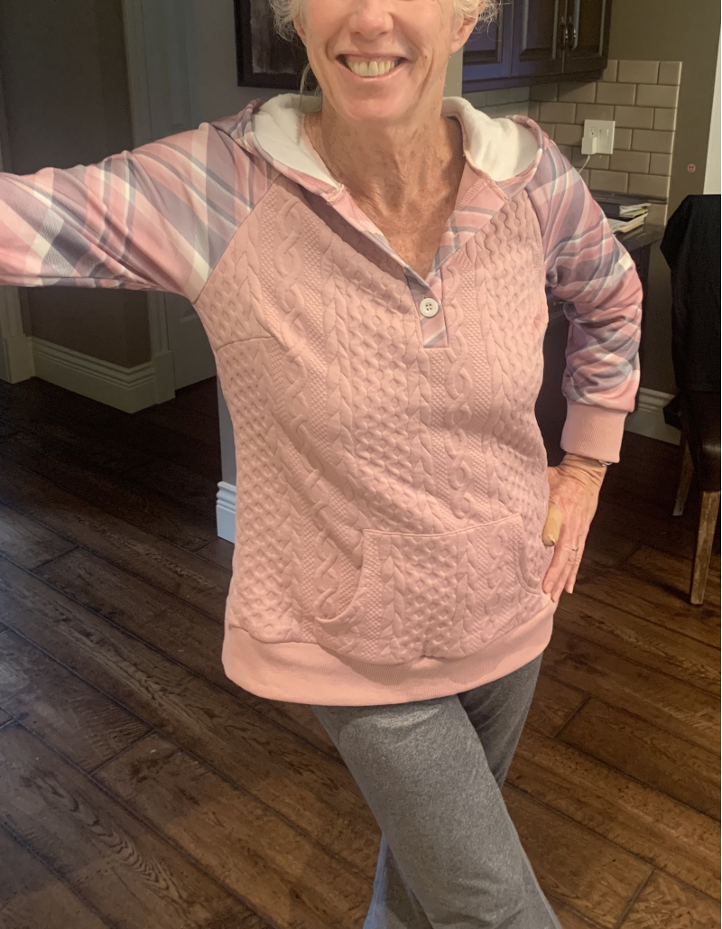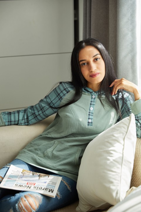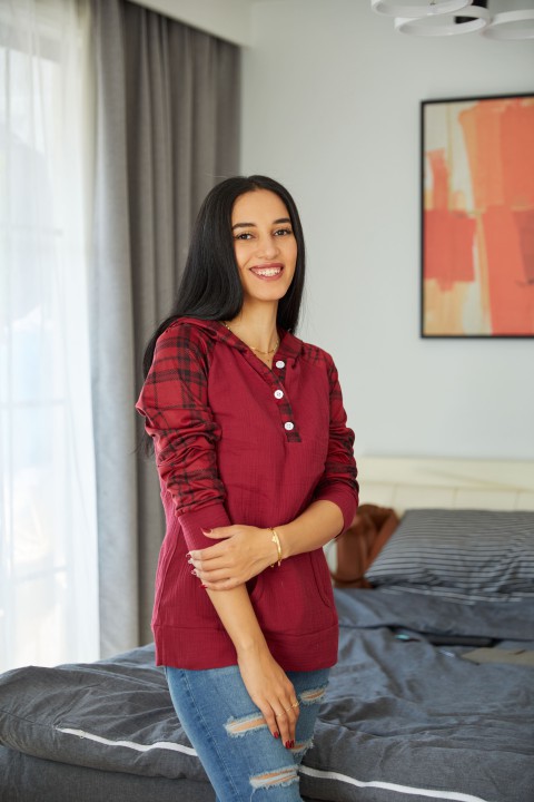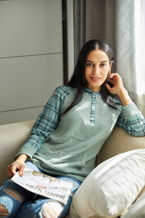 Sage Green Tummy Coverage Plaid Long Sleeve Hoodie