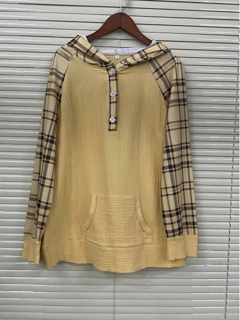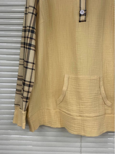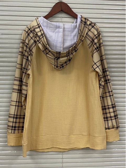 Light Camel Tummy Coverage Plaid Long Sleeve Hoodie