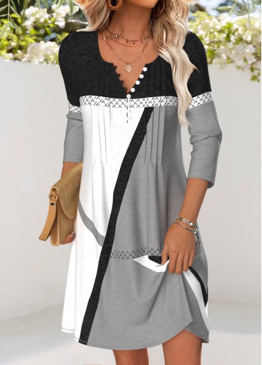 Added Successfully White Button Geometric Print Short Sleeveless V Neck Dress