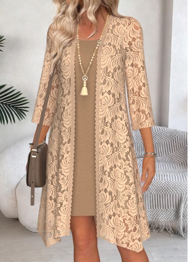 Added Successfully Light Coffee Tummy Coverage Short Dress and Cardigan