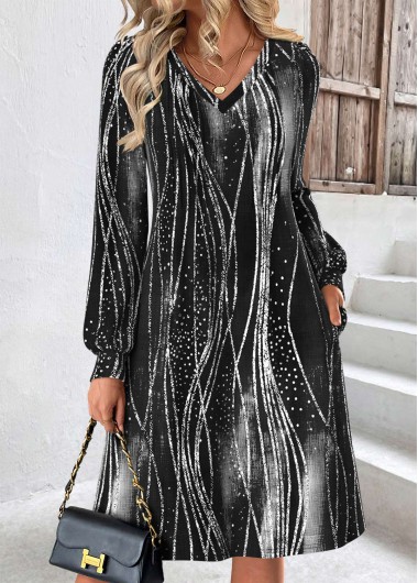 Added Successfully Black Breathable Geometric Print Short Long Sleeve Hoodie Dress