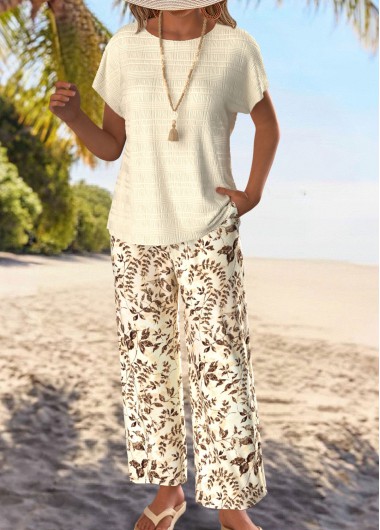 Beige Fruit Printing Ankle Length Short Sleeve Top