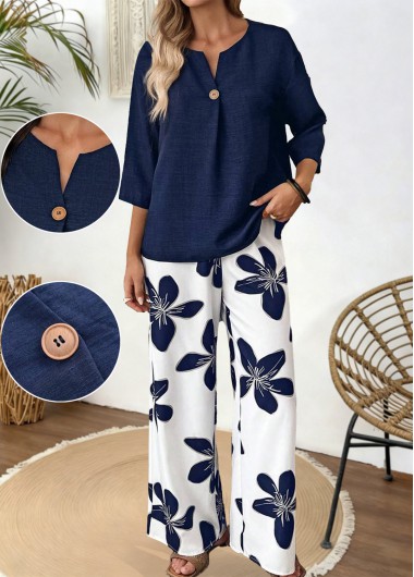 Blue Lightweight Floral Print Short Sleeve Top and Pants