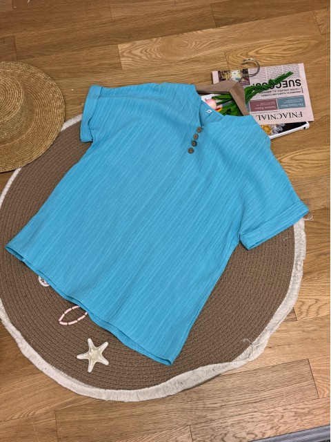 Peacock Blue Curved Hem Long Sleeve T Shirt