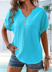 women's clothes / Tops / Tees&T-shirts  /  Yellow Button Short Sleeve Split Neck T Shirt