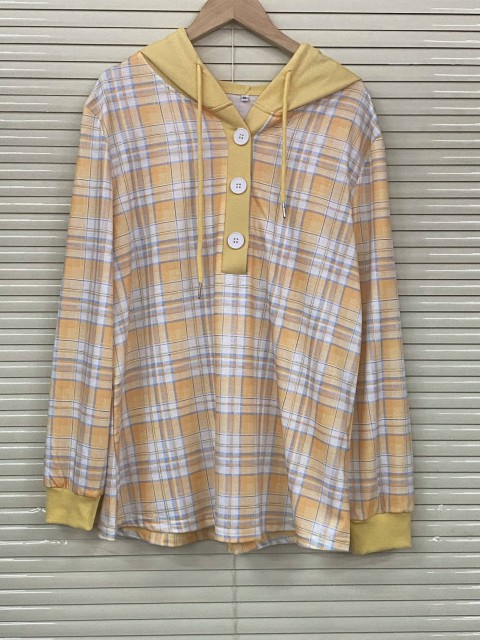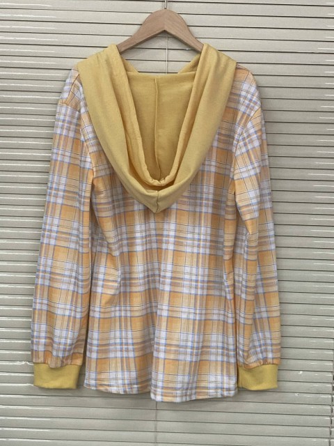 Light Camel Tummy Coverage Plaid Long Sleeve Hoodie